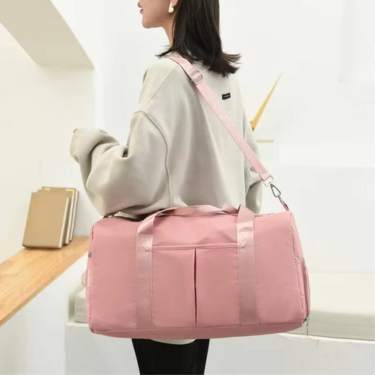 Yoga Gym Duffel Bag for Women, Multi-Functional with Yoga Mat Holder, Shoe Compartment, Wet Dry Pockets, and Weekend Travel Space (PINK)